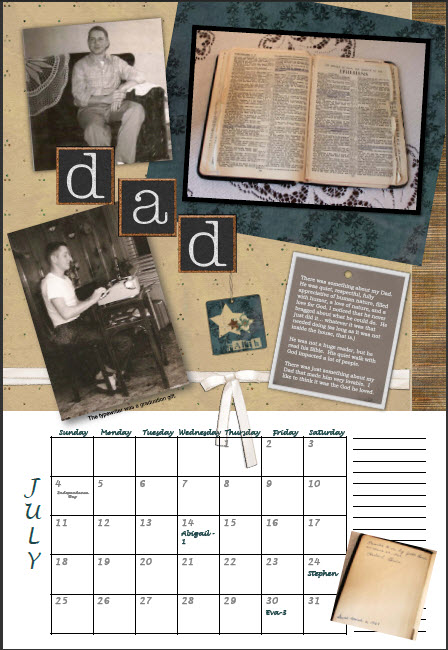 However, I spent the majority of my vacation finishing my annual family calendar! This year’s theme was “A Mad Mix of Things” and is concentrated upon the things in our lives that bring back good memories. I also threw in family history, as always. My basis is this scripture: