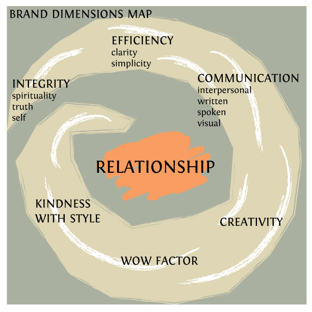 In branding a company (or yourself) you go through a research process to discover brand attributes. From those, you build a brand dimensions map. I began building for my final presentation with this visual, cleaning it up from the previous rendition.