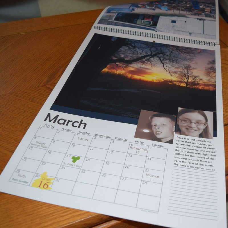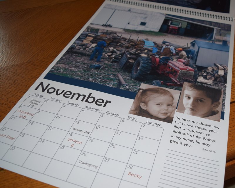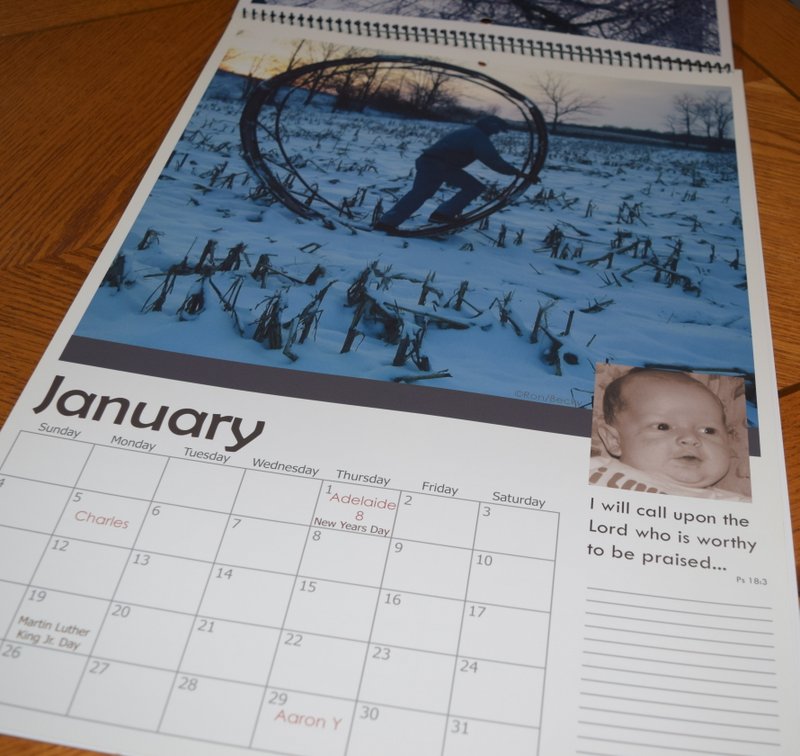 Every year for the past 13 I have created a family calendar. It is a 13 month calendar since I normally do not finish it until January – that would be because of all the Christmas orders and the busy holiday season. This year was a bit different in that I received a stack of ornament orders at the end of December, but I somehow managed to complete my calendar before the end of the month! Yay!