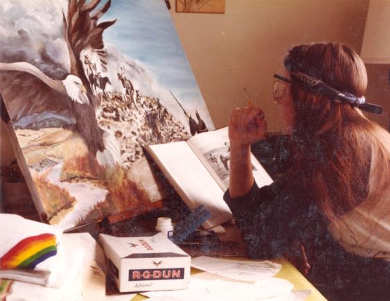 Below is my first ever painting on canvas called War Clouds and featured the Sioux at the time of Custer (I studied history a lot) and the current location of the battle.