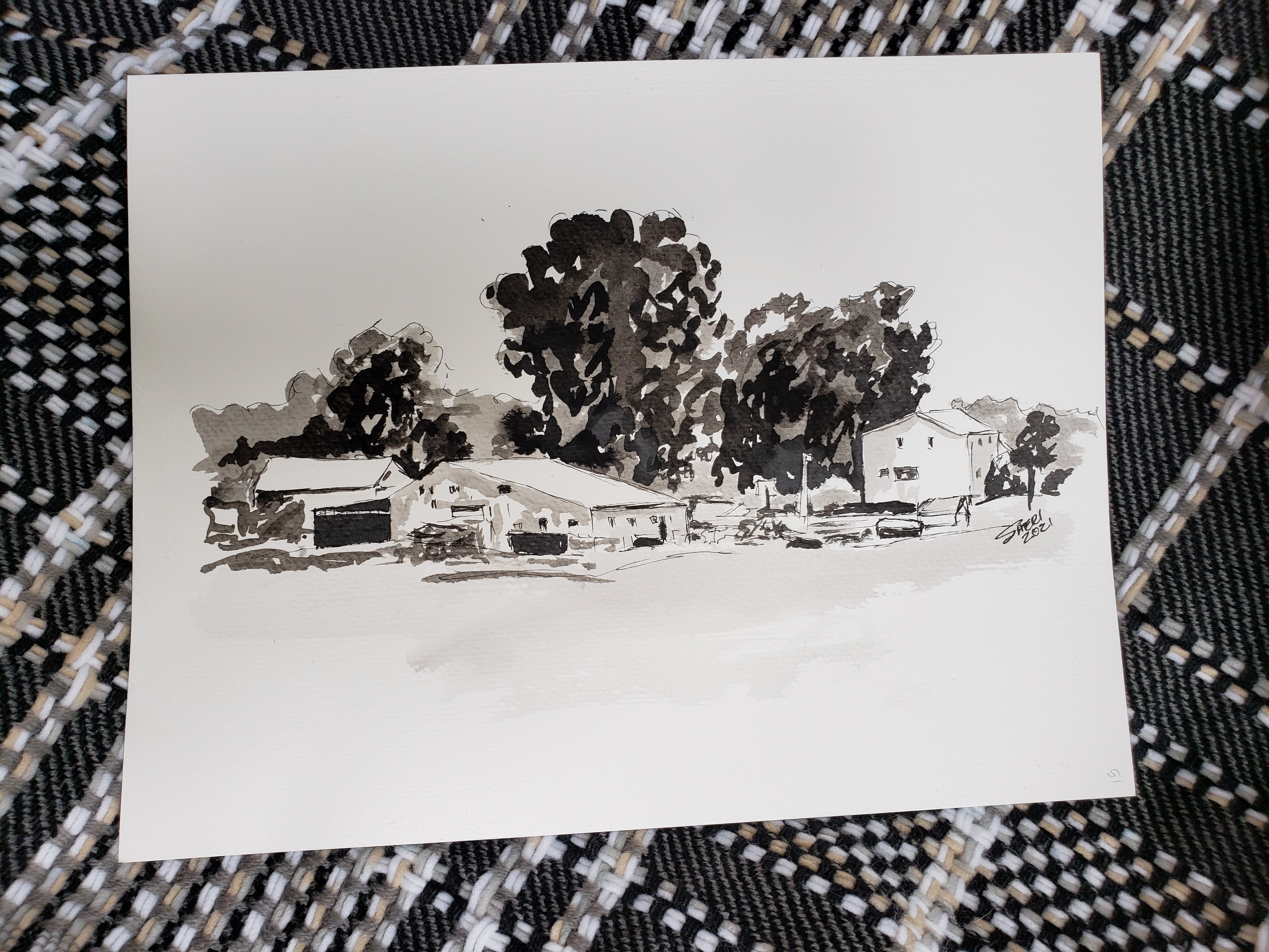 I am playing around with ideas for a more distanced portrait. Sometimes it is nice to get the person in their daily element. This is Stephen – a farmer and a craftsman by trade. This was a composition, colors, and values practice sketch. Expect a few more to be posted before I decide which one to go with for the larger version.