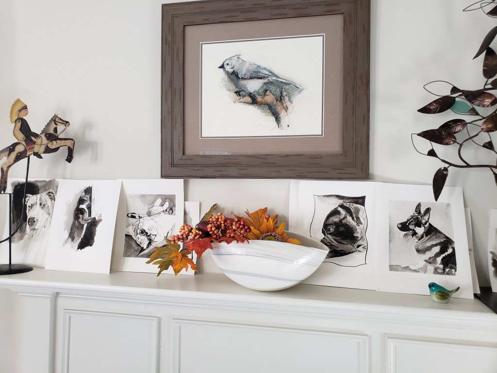 Throughout Inktober I salted in the images of pets from friends and people I know as a part of the joy it gives me to give back to others, and at the same time, it was a fun exercise in pet portraiture and practicing values and shading. The above image is one of the spaces in the house that allowed me to enjoy the portraits throughout Inktober. I am missing them now that I have packaged them up to mail off.