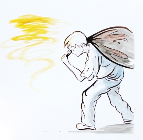 My goal with the second illustration was to go for a simpler form. I chose to do a line drawing with minimal color, which is not my usual style.