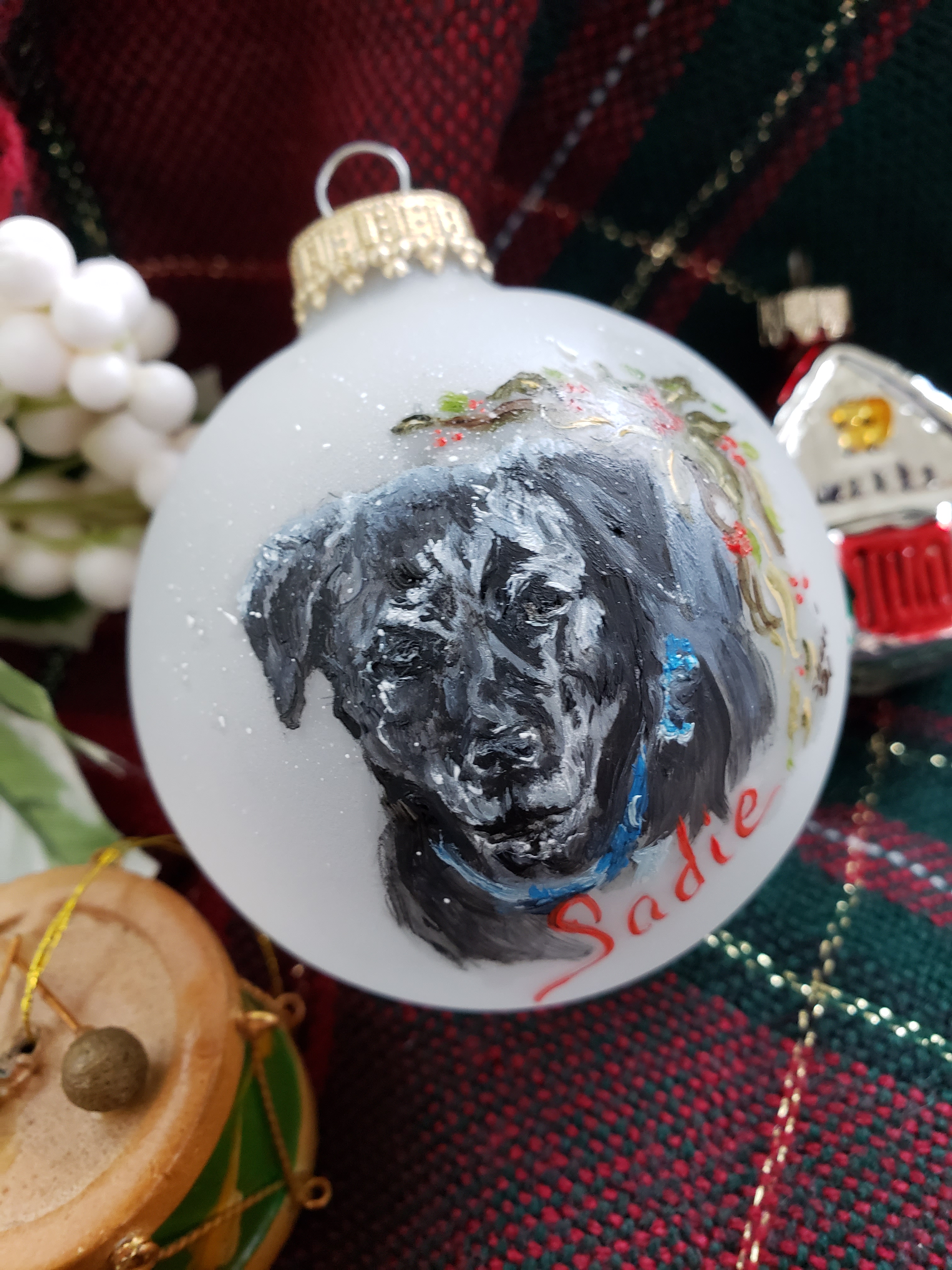 Grandma has a mama raccoon who visits the feeders when she is raising her brood. It seemed appropriate that she should model for a first Christmas ornament!
