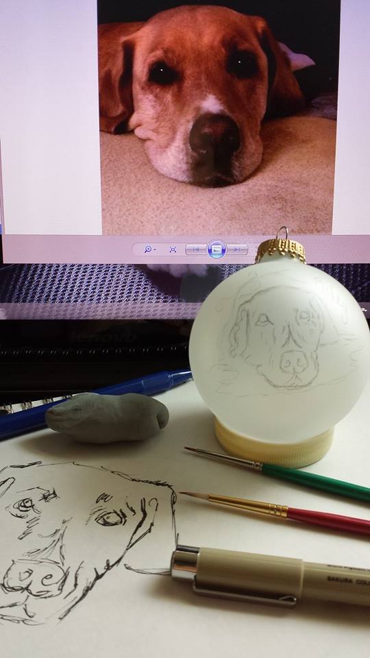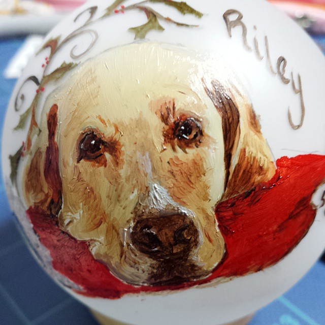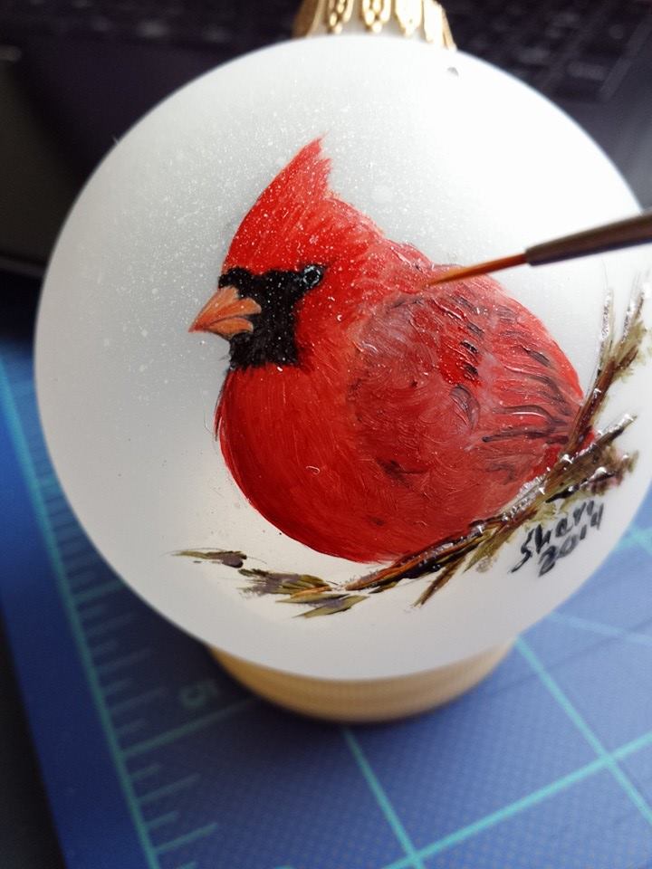 In the early 1980s I began painting Christmas ornaments using oil paints and tiny brushes (sometimes my own hair or a cat whisker was used to make the smallest of lines.)