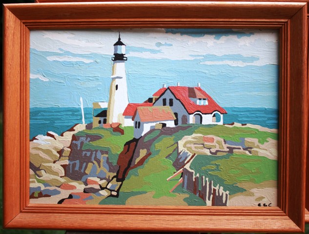 As I stared at them I felt nostalgia, puzzlement, as well as deep pleasure of a found treasure. At the same time I was thinking, “What in the world did I save paint-by-numbers for?” Then I saw the initials.