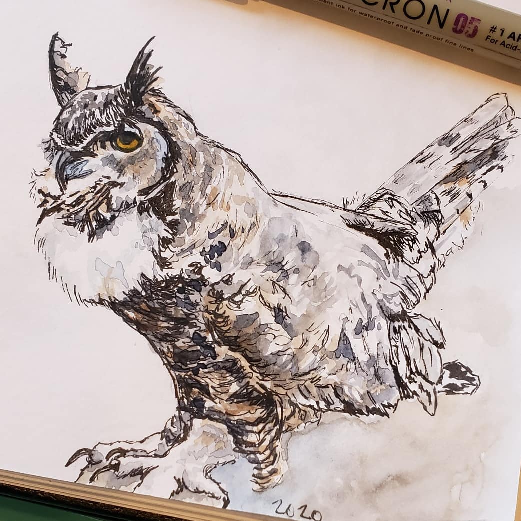 Hooting Season During the Hooting Season, the Great Horned Owls behind our house will go into a horizontal position and fluff their white bib as they hoot back and forth. Little eggs will soon be happening! Share this:Tweet Click to email a link to a friend (Opens in new window) Email Click to print (Opens in new window) Print Like Loading...
